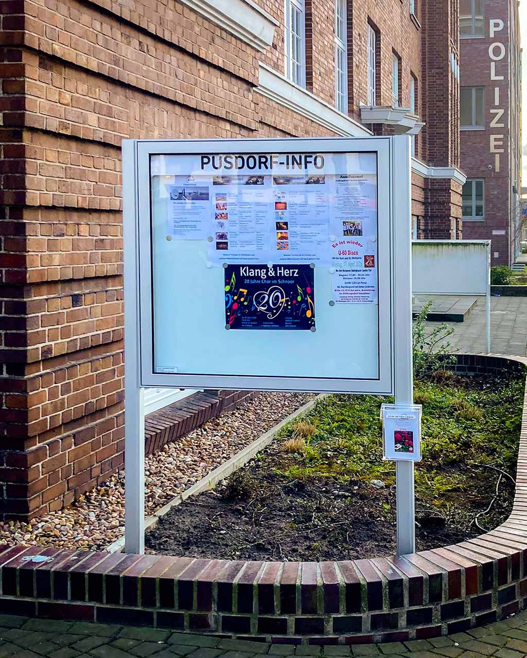 Daher war der Wunsch nach einer entsprechenden Internetseite nur konsequent. Es dauerte dann auch nicht mehr lange, bis es unter der Adresse „pusdorf.info“ eine Informationsseite im Netz gab. Klar war aber auch von Anfang an, dass nicht jeder/jede die Angebote im Internet nutzen kann oder möchte. Somit musste es ergänzend ein entsprechendes Analog-Angebot geben, am besten einen Schaukasten an zentraler Stelle im Stadtteil.